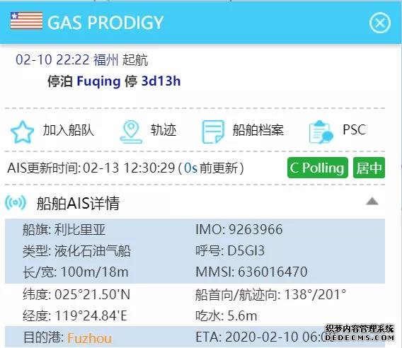 該船裝載了2400噸液態(tài)丙烯,于2月10日16時進靠福州中江化工碼頭卸貨。碼頭作業(yè)人員檢查時發(fā)現(xiàn),該輪1號貨艙的1號貨泵法蘭出現(xiàn)裂縫并發(fā)生丙烯氣體泄露。在采取臨時堵漏措施后,該船于11日凌晨被拖帶至港口外的安全水域錨泊,并清空3000米半徑范圍內(nèi)的錨泊船舶,最大限度降低風(fēng)險。2月12日晚,專業(yè)的檢修隊伍登船開展堵漏修理工作。目前,對該輪的搶險處置仍在進行中。