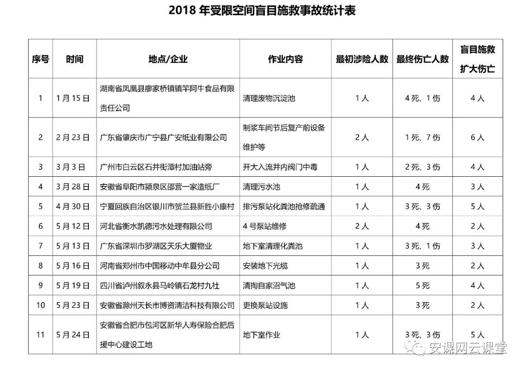 2018年受限空間盲目施救事故統(tǒng)計(jì)