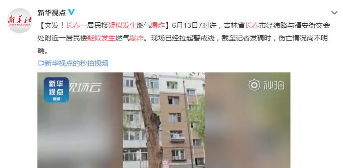 6月13日7時(shí)許,吉林省長春市經(jīng)緯路與福安街交會(huì)處附近一居民樓疑似發(fā)生燃?xì)獗ā?/span>