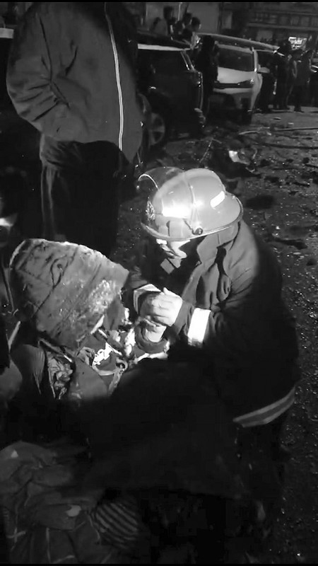 不幸之中也不乏溫暖的畫面。在現(xiàn)場,消防隊(duì)員發(fā)現(xiàn)一位老太太坐在樓下路邊哭喊,“我的孫女還在樓上!”鄰居說,她和孫女住在5樓,樓板被炸塌后孫女掉了下去。消防隊(duì)員握著老人的手,告訴她,“孩子已經(jīng)在消防車上了,大娘你別擔(dān)心。”