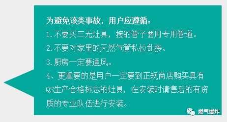 2012年7月27日重慶奉節(jié)縣一居民家發(fā)生天然氣意外泄漏事故,發(fā)生事故的居民家中所有家具和電器都被燒毀,窗戶的玻璃已被震爛。爆炸造成一家6人燒傷,最終一人搶救無(wú)效死亡。據(jù)網(wǎng)上報(bào)道爆炸是由于天然氣管道與輸氣軟管之間存在縫隙,導(dǎo)致天然氣泄漏引發(fā)的。在該戶家中,發(fā)現(xiàn)新買的燃?xì)庠罹?,是個(gè)三無(wú)產(chǎn)品。該戶的燃?xì)夤艿?,是由兩根軟管接起?lái)的,一根軟管不夠長(zhǎng),中間還用一根硬塑料管連了起來(lái),還使用了膠水來(lái)粘接,這是非常危險(xiǎn)的作法,連接的塑料管是硬的,天然氣完全可能因連接處泄漏出來(lái)。也許是用戶點(diǎn)了火,也許只是開(kāi)了某一種電器的開(kāi)關(guān),就引起了天然氣爆炸,隨后的火焰擴(kuò)散,屋內(nèi)東西全部燒毀。