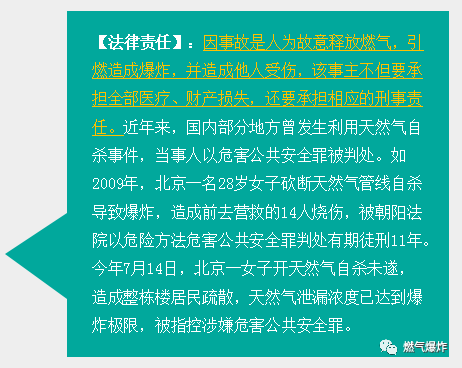 案例三32011年8月6日下午5時(shí)30分許,長(zhǎng)沙一男子疑因情感糾紛,引爆自家天然氣,導(dǎo)致至少7人受傷。據(jù)小區(qū)物業(yè)工作人員介紹,當(dāng)日下午4時(shí)左右,小區(qū)物業(yè)人員在常規(guī)巡樓時(shí),發(fā)現(xiàn)該住戶有燃?xì)庑孤冬F(xiàn)象,隨后通知了該戶業(yè)主,這家女業(yè)主電話中說(shuō)家中有人要自殺!獲悉此情況后,物業(yè)保安、公安消防及燃?xì)夤救藛T第一時(shí)間趕赴現(xiàn)場(chǎng)實(shí)施救援。在營(yíng)救過(guò)程中,屋內(nèi)人員起初將門(mén)反鎖,未讓救援人員進(jìn)入。隨后他突然打開(kāi)家門(mén),引爆自家天然氣,導(dǎo)致事故發(fā)生。事故造成現(xiàn)場(chǎng)至少7人受傷,受傷者為公安、消防、燃?xì)夤救藛T和物業(yè)保安等。