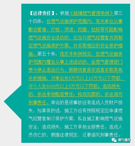 2018年11月11日上午7時(shí)許,青島市北區(qū)嘉定路16號(hào)保利里院里小區(qū)5號(hào)樓發(fā)生一起居民燃?xì)忾W爆事故,事故造成2人受傷以及多戶居民財(cái)產(chǎn)損失。據(jù)報(bào)道,事故原因調(diào)查及善后工作正在進(jìn)行中......【爆炸新聞】10多層樓玻璃被炸飛!2人受傷!青島一小區(qū)發(fā)生燃?xì)忾W爆事故!這波知識(shí)必須要知道!?天然氣清潔高效,其推廣使用,給市民帶來(lái)了極大的方便。但因燃?xì)夤芫W(wǎng)遍布城市地下區(qū)域,管道伸入到居民家中,居民又是直接操作者使用者,燃?xì)獍踩珕?wèn)題就成了涉及每個(gè)人的問(wèn)題。無(wú)論是政府、燃?xì)饨?jīng)營(yíng)企業(yè)、還是居民用戶都應(yīng)格外重視燃?xì)獍踩?,提高燃?xì)獍踩?zé)任意識(shí),避免事故的發(fā)生。為此,應(yīng)在查明“11.11青島市北區(qū)保利里院里小區(qū)燃?xì)忾W爆事故”原因的基礎(chǔ)上,落實(shí)各主體責(zé)任,并依法維護(hù)各自權(quán)益。律師根據(jù)多年既往案例,對(duì)燃?xì)馐鹿噬婕暗姆蓡?wèn)題進(jìn)行評(píng)析,希望能為相關(guān)責(zé)任主體提供有益的法律建議。01發(fā)生燃?xì)馐鹿蕰r(shí),各方應(yīng)如何進(jìn)行責(zé)任自查?1、燃?xì)夤拘枰圆榈膬?nèi)容包含但不限于:在為用戶開(kāi)通燃?xì)鈺r(shí)是否進(jìn)行了用氣安全教育,是否定期進(jìn)行用氣安全宣傳;是否定期入戶安檢,用戶是否在安檢單上簽字確認(rèn),發(fā)現(xiàn)隱患后是否及時(shí)補(bǔ)檢,用戶是否配合隱患整改;若用戶安裝有燃?xì)鈭?bào)警器,燃?xì)鈭?bào)警器是否連接電源,燃?xì)鈭?bào)警器是否連接電磁閥?燃?xì)鈭?bào)警器安裝是否符合《城鎮(zhèn)燃?xì)庠O(shè)計(jì)規(guī)范》;用戶的燃?xì)馄骶撸ㄈ細(xì)庠罹?、燃?xì)鉄崴鳎┦欠翊嬖诔谑褂茫惭b人員及單位是否具備相應(yīng)資格、資質(zhì);用戶是否存在裝修過(guò)程中未通知燃?xì)夤?,私改燃?xì)夤艿馈袢細(xì)夤艿?、將燃?xì)庠O(shè)施作為負(fù)重支架堆放、懸掛物品或者將燃?xì)夤艿雷鳛殡娖髟O(shè)施的接地導(dǎo)體等隱患;用戶是否規(guī)范用氣,用氣后及時(shí)關(guān)閉灶前閥;用戶是否存在自傷自殘等情況;是否投保相關(guān)保險(xiǎn)等。2、事故受害方責(zé)任追究過(guò)程中需要考量的內(nèi)容包含但不限于:燃?xì)夤驹谥脫Q通氣時(shí)是否履行了安全宣傳教育;燃?xì)夤臼欠衩磕甓既霊舭矙z并對(duì)燃?xì)怆[患提出整改意見(jiàn);燃?xì)夤景惭b燃?xì)庠睢⑷細(xì)鈭?bào)警器和電磁閥是否符合國(guó)家規(guī)范;燃?xì)夤咎峁┑娜細(xì)庠?、燃?xì)鈭?bào)警器和電磁閥是否質(zhì)量合格;其他需要注意的問(wèn)題。3、燃?xì)庵鞴懿块T(mén)履責(zé)的重點(diǎn)內(nèi)容:1)作為燃?xì)庵鞴懿块T(mén),在事故發(fā)生后,進(jìn)行事故調(diào)查,協(xié)調(diào)燃?xì)夤?、受害人和公安、消防、居民辦事處等部門(mén),委托專家組出具事故調(diào)查的專家分析意見(jiàn),客觀公正的處理善后事宜,是本部門(mén)的法定職責(zé);2)作為此次事故調(diào)查的主管部門(mén),應(yīng)嚴(yán)格依法依規(guī)處理,還應(yīng)注意事發(fā)現(xiàn)場(chǎng)第一手資料的留存;3)嚴(yán)格遵守法定程序建立事故處理檔案,為今后司法處理保存證據(jù)材料,避免被燃?xì)獍讣芎θ嘶蚱渌黧w投訴;4)依法依規(guī)行使事故調(diào)查職責(zé)過(guò)程中,除了追求效率,還應(yīng)注意保護(hù)各方當(dāng)事人的合法權(quán)利。例如,涉及鑒定應(yīng)提 前通知各方當(dāng)事人,證據(jù)的封存、解封應(yīng)通知各方當(dāng)事人到場(chǎng),涉案相關(guān)信息主動(dòng)公開(kāi)或依申請(qǐng)公開(kāi),選聘事故調(diào)查專家組成員時(shí)應(yīng)留存各專家的資質(zhì)證明等。?02燃?xì)馐鹿拾l(fā)生后進(jìn)入訴訟程序的可能結(jié)果分析根據(jù)既往辦案經(jīng)驗(yàn)及既有案例,律師總結(jié)法院裁判觀點(diǎn)如下:1、關(guān)于事故事實(shí)的認(rèn)定,一般以事故調(diào)查專家組出具的專家分析意見(jiàn)為準(zhǔn)。2、在居民燃?xì)獗及讣?,燃?xì)夤竞苌儆胁怀袚?dān)責(zé)任的情形。3、作為事故的受害方,選擇盡可能多的與事故相關(guān)的被告,越有利于維護(hù)自身權(quán)利。4、司法機(jī)關(guān)在民事責(zé)任領(lǐng)域,一般會(huì)站在同情弱者的角度裁判。5、若燃?xì)獗ㄊ鹿氏等藶楣室庠斐?,行為人可能?huì)涉嫌刑事犯罪,罪名包括但不限于爆炸罪、以危險(xiǎn)方法危害公共安全罪等。?案例一12012年7月27日重慶奉節(jié)縣一居民家發(fā)生天然氣意外泄漏事故,發(fā)生事故的居民家中所有家具和電器都被燒毀,窗戶的玻璃已被震爛。爆炸造成一家6人燒傷,最終一人搶救無(wú)效死亡。據(jù)網(wǎng)上報(bào)道爆炸是由于天然氣管道與輸氣軟管之間存在縫隙,導(dǎo)致天然氣泄漏引發(fā)的。在該戶家中,發(fā)現(xiàn)新買的燃?xì)庠罹?,是個(gè)三無(wú)產(chǎn)品。該戶的燃?xì)夤艿?,是由兩根軟管接起?lái)的,一根軟管不夠長(zhǎng),中間還用一根硬塑料管連了起來(lái),還使用了膠水來(lái)粘接,這是非常危險(xiǎn)的作法,連接的塑料管是硬的,天然氣完全可能因連接處泄漏出來(lái)。也許是用戶點(diǎn)了火,也許只是開(kāi)了某一種電器的開(kāi)關(guān),就引起了天然