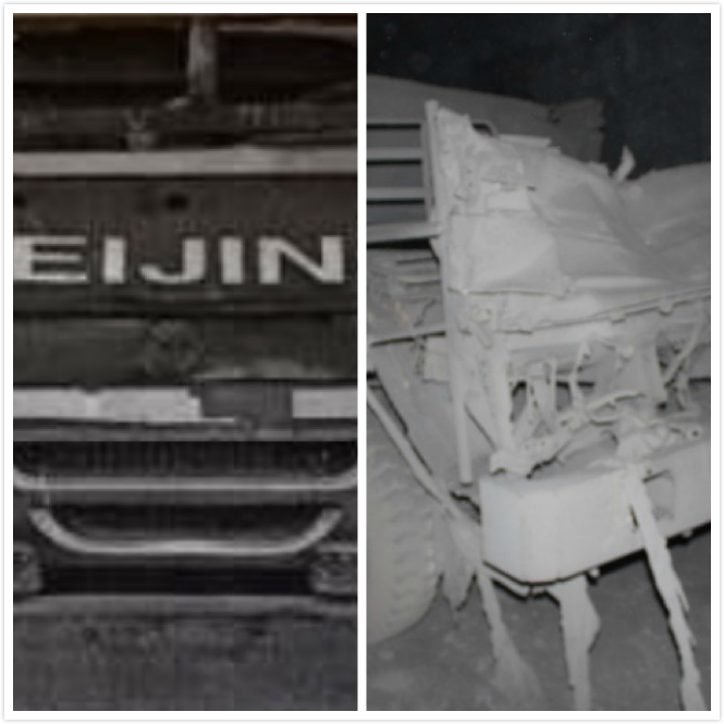 圖4C17號運煤車進礦證件照 圖5 C17號運煤車事故后現(xiàn)場