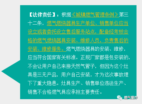 2、事故受害方責任追究過程中需要考量的內(nèi)容包含但不限于:燃氣公司在置換通氣時是否履行了安全宣傳教育;燃氣公司是否每年都入戶安檢并對燃氣隱患提出整改意見;燃氣公司安裝燃氣灶、燃氣報警器和電磁閥是否符合國家規(guī)范;燃氣公司提供的燃氣灶、燃氣報警器和電磁閥是否質(zhì)量合格;其他需要注意的問題。