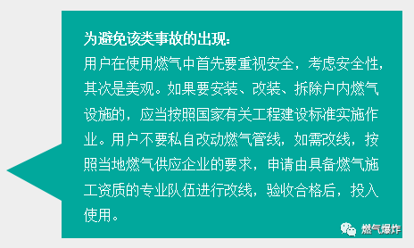 2012年7月27日重慶奉節(jié)縣一居民家發(fā)生天然氣意外泄漏事故,發(fā)生事故的居民家中所有家具和電器都被燒毀,窗戶的玻璃已被震爛。爆炸造成一家6人燒傷,最終一人搶救無效死亡。據(jù)網(wǎng)上報道爆炸是由于天然氣管道與輸氣軟管之間存在縫隙,導(dǎo)致天然氣泄漏引發(fā)的。在該戶家中,發(fā)現(xiàn)新買的燃氣灶具,是個三無產(chǎn)品。該戶的燃氣管道,是由兩根軟管接起來的,一根軟管不夠長,中間還用一根硬塑料管連了起來,還使用了膠水來粘接,這是非常危險的作法,連接的塑料管是硬的,天然氣完全可能因連接處泄漏出來。也許是用戶點了火,也許只是開了某一種電器的開關(guān),就引起了天然氣爆炸,隨后的火焰擴散,屋內(nèi)東西全部燒毀。
