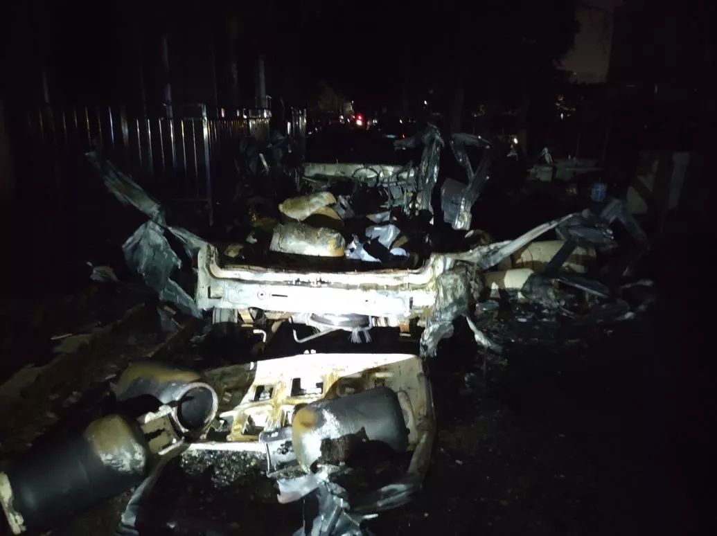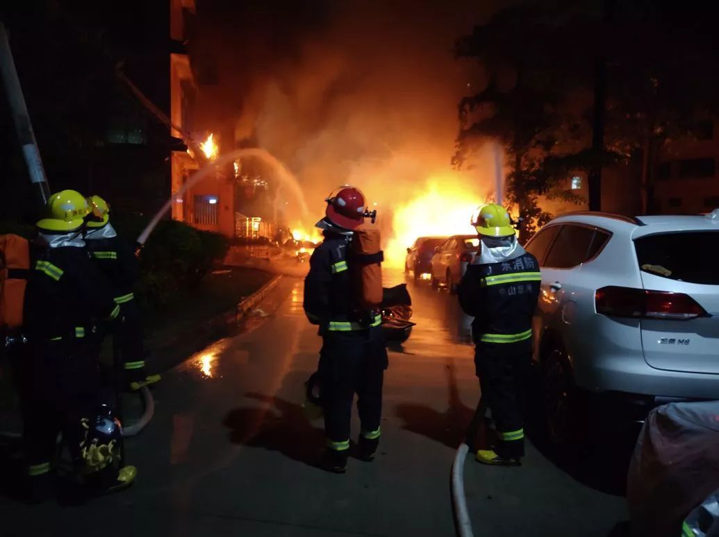 2時(shí)34分,中隊(duì)剛到場(chǎng),指揮員立即勘查現(xiàn)場(chǎng),小車已被大火吞噬,火災(zāi)已蔓延到附近的出租屋,有人員被困,聽到有六七聲爆炸聲,并看到有氣瓶飛到河對(duì)面。