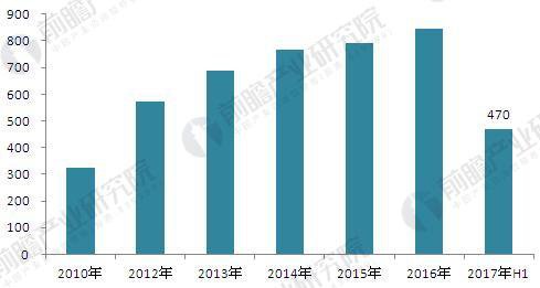 圖表 5:2010-2017 年城市燃?xì)庀M(fèi)量(單位:億立方米)