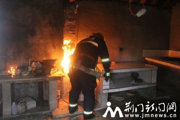 5月6日上午8時(shí)05分,沙洋縣高陽鎮(zhèn)四冢村7組一處民房內(nèi)的煤氣罐泄漏著火。沙洋消防中隊(duì)接到報(bào)警后,迅速出動一輛水罐消防車、7名官兵趕往現(xiàn)場處置。