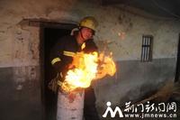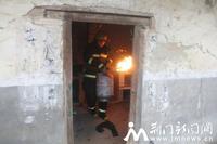 8時(shí)30分,消防官兵到達(dá)現(xiàn)場,據(jù)現(xiàn)場偵察情況發(fā)現(xiàn),房屋內(nèi)一煤氣罐正向外噴射火焰,引燃了灶臺上的許多物品,煤氣罐隨時(shí)可能發(fā)生爆炸,造成人員傷亡,情況十分危急。消防戰(zhàn)斗員慕晨曦沒有絲毫猶豫,立即將手套打濕,一把抱起著火的煤氣罐就往外跑。屋外正飄著小雨、刮著風(fēng),雖然戴著消防頭盔,可火焰擦過,還是燙紅了他的臉龐。小跑至空曠地帶后,慕晨曦才將煤氣罐放下,消防官兵們連忙對罐身噴水降溫,并用濕抹布蓋滅火焰,關(guān)閉閥門。在撲滅屋內(nèi)殘火并確認(rèn)煤氣罐無復(fù)燃可能后,消防官兵收整器材返回。