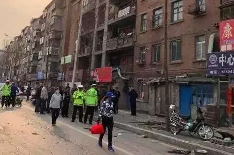 事發(fā)居民樓為紅磚樓,年頭較久,發(fā)生爆炸的是該棟樓3單元5樓一戶居民家,沿街散落著大量門窗、木條和一些生活用品。事發(fā)房間內(nèi)部和外走廊一片凌亂,門和窗戶全都被崩掉,灶臺上有焦糊的痕跡。
