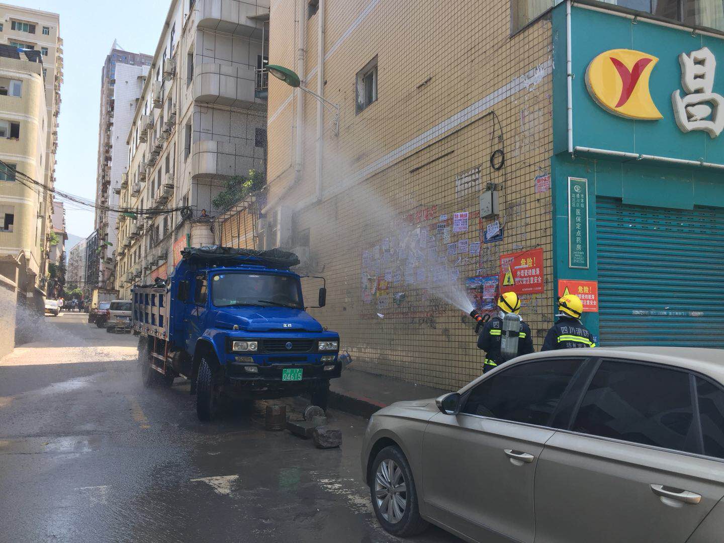 到達(dá)現(xiàn)場(chǎng)后,中隊(duì)官兵對(duì)現(xiàn)場(chǎng)情況經(jīng)過(guò)仔細(xì)勘察發(fā)現(xiàn),因工地施工人員操作不慎,誤將埋在地下的一條天然氣管道挖破,管道發(fā)生破裂導(dǎo)致大量氣體正快速外泄。伴隨著氣體的泄漏,管道破裂處還傳來(lái)了尖銳的氣體泄漏聲,四周的空氣中彌漫著刺鼻的天然氣味。為了防止泄漏的氣體對(duì)周圍的群眾造成傷害,指揮員立即下令警戒事故現(xiàn)場(chǎng),并將無(wú)關(guān)人員快速疏散到安全地帶。并通知天然氣公司趕往現(xiàn)場(chǎng)處置。與此同時(shí),中隊(duì)指導(dǎo)員帶領(lǐng)攻堅(jiān)組成員迅速確定天然氣的泄漏點(diǎn),鋪設(shè)水槍陣地,出兩支水槍對(duì)泄漏點(diǎn)處的可燃?xì)怏w進(jìn)行稀釋,盡最大限度降低可燃?xì)怏w濃度,防止發(fā)生爆炸事故。經(jīng)過(guò)近二十多分鐘的戰(zhàn)斗,該片區(qū)的天然氣閥門被關(guān)閉,破裂處停止了尖銳的氣體泄漏聲。