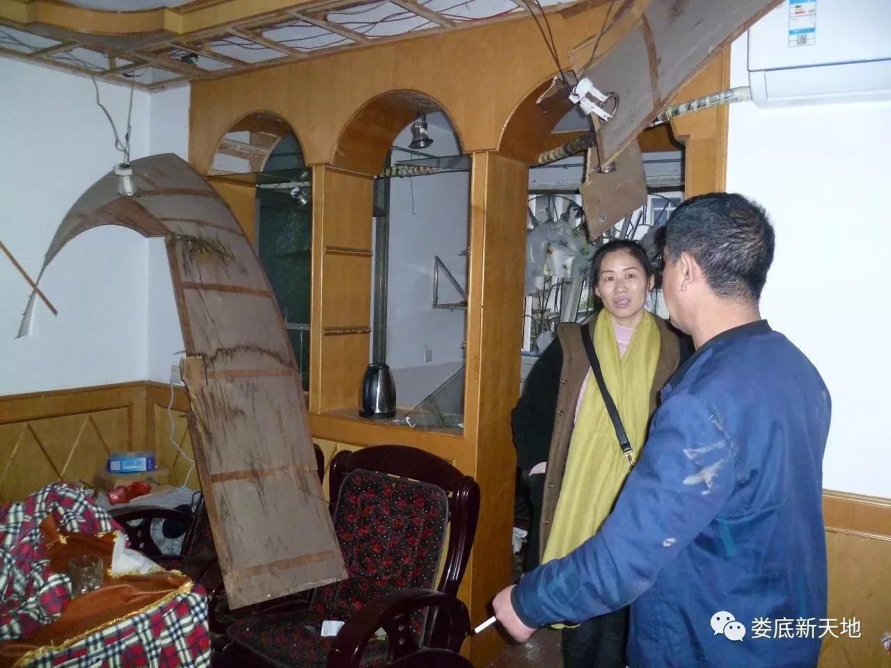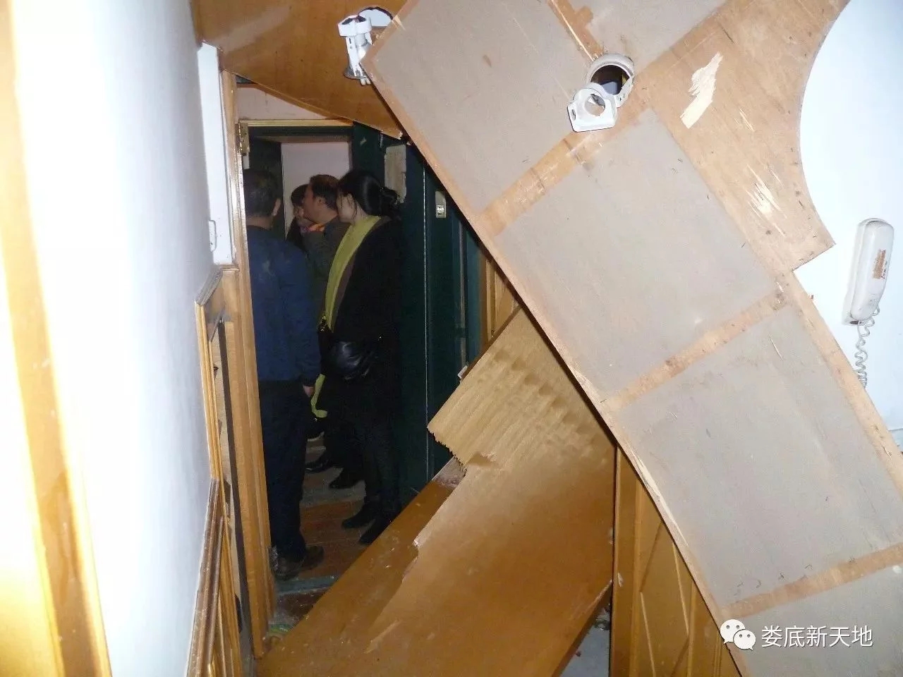 下午6時(shí),筆者走進(jìn)這套位于仙人閣的三室兩廳居室。只見(jiàn)防盜門(mén)活脫脫地被強(qiáng)大的氣浪沖開(kāi),里層的木門(mén)碎裂倒掉,客廳的天花板上也有好幾塊被毀。三個(gè)臥室、陽(yáng)臺(tái)、廚房的玻璃全部被震碎,碎玻璃撒了一地,滿地狼藉。臥室的柜子也被沖倒。