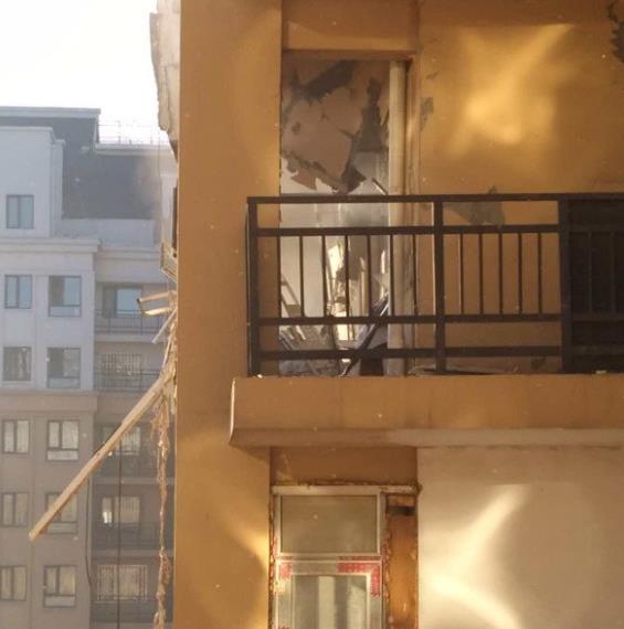 9 時許,記者趕到涉事小區(qū),小區(qū)地面上散落著大量玻璃碎片,此時小區(qū)3 號樓4 單元已被設(shè)立警戒線,29 樓一民宅窗戶碎裂,樓外墻體苯板裂開數(shù)條裂縫,該樓層走廊一片狼藉,樓層電梯間已嚴重變形,供暖、供水、電力、燃氣等部門工作人員在樓內(nèi)排查,樓內(nèi)居民已全部被疏散。