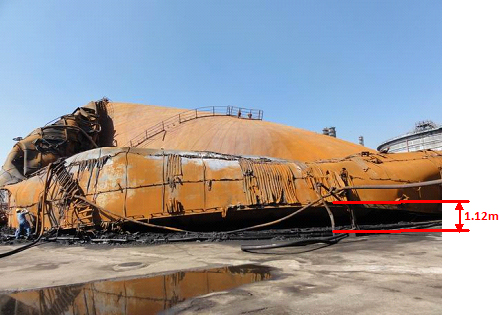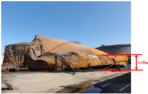 875#罐被燒整體坍塌,南側(cè)罐壁由15.86米坍塌至4.35米,見(jiàn)圖2。