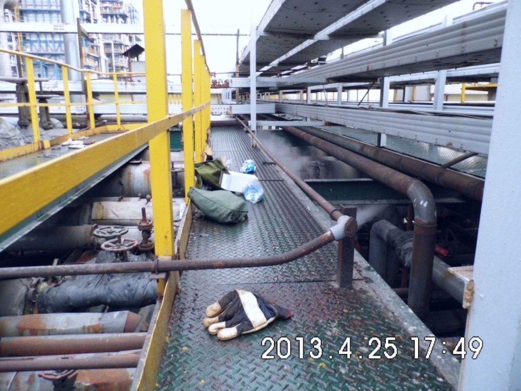 | 4月25日 | 15:20 | 曲某不見于某和作業(yè)人員回來,也到保運(yùn)室和泵房尋找,均未見作業(yè)人員,當(dāng)曲某尋找到事故發(fā)生地點(diǎn)下部的半封閉泵房聞到異常氣味后,馬上查找氣味來源,查找到盲板抽堵現(xiàn)場后,發(fā)現(xiàn)更換盲板的“十三化建”三名作業(yè)人員關(guān)某、趙某和劉某已經(jīng)暈倒在作業(yè)現(xiàn)場,于是立即上報(bào)“沈陽蠟化”領(lǐng)導(dǎo)并組織施救,同時(shí)通知“十三化建”項(xiàng)目負(fù)責(zé)人金某及時(shí)趕到現(xiàn)場,監(jiān)護(hù)人員于某回到作業(yè)現(xiàn)場時(shí),三人中毒暈倒事故已經(jīng)發(fā)生。 |